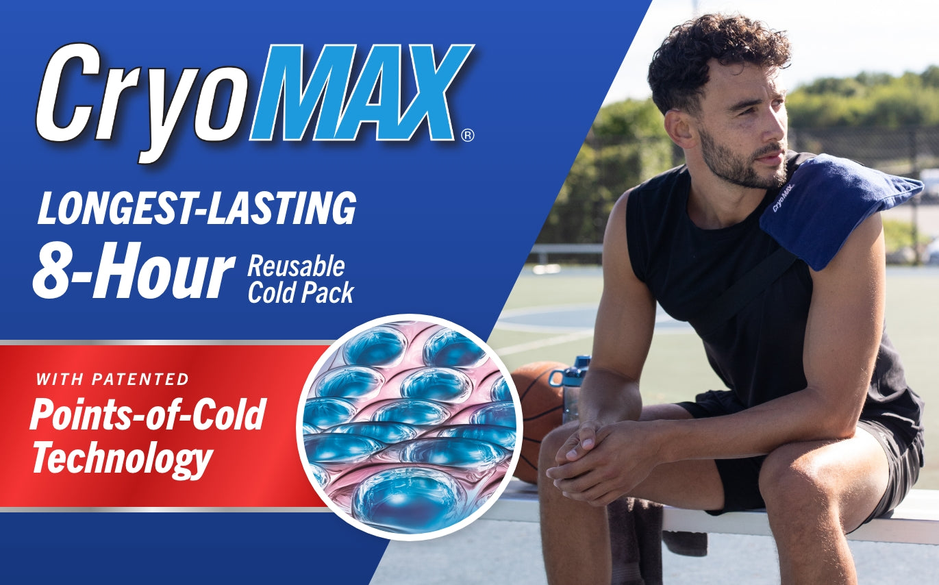 CryoMAX® Cold Packs are designed to provide continuous cold therapy for up to 8 hours, thanks to our patented Points of Cold Technology, which ensures long-lasting, consistent cooling without cold spots.